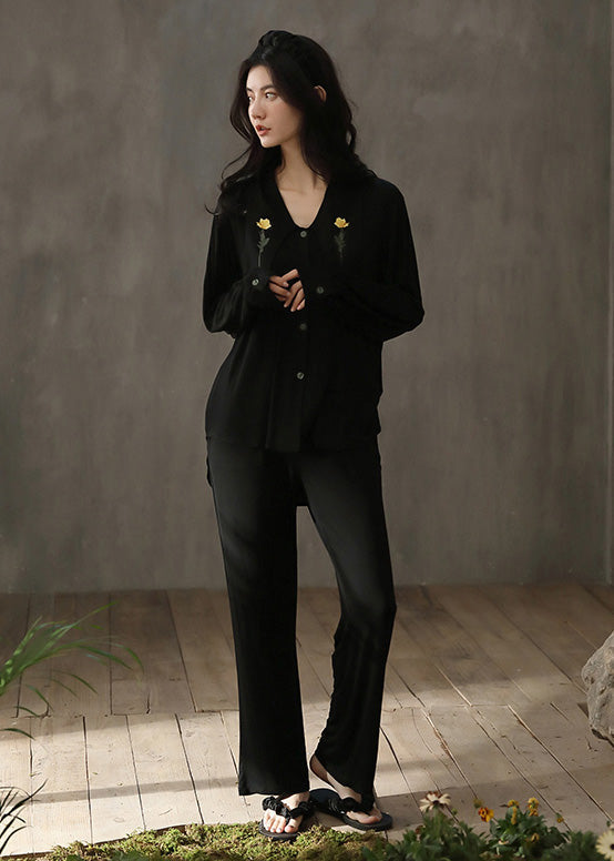 Life is too short to live without the Loose Black Print Button Ice Silk Pajamas Two Pieces Set Spring LY1898. Be happy. Be Content. Be Satisfied.