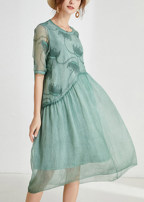 Loose Green Embroidered Patchwork Chiffon Dresses Summer AB1026