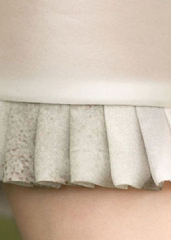Natural Beige Wrinkled Print Tulle Gown Dresses Spring