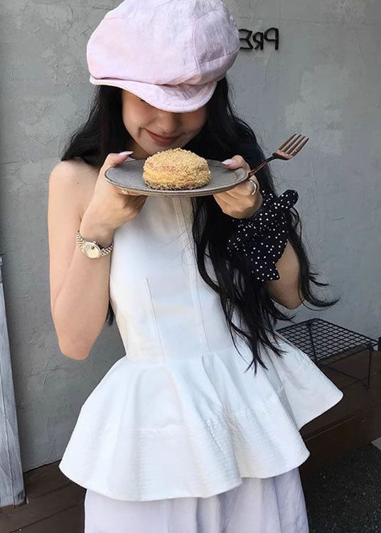 Life is too short to live without the Neck O Sleeveless French White Ruffled Top Cotton. Be happy. Be Content. Be Satisfied.