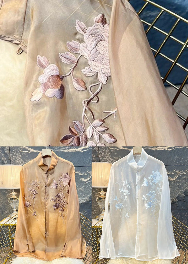 The New Khaki Embroidered Button Tulle Blouses Long Sleeve CG1007 is evocative, to say the least, but that's why you're drawn to it in the first place.
