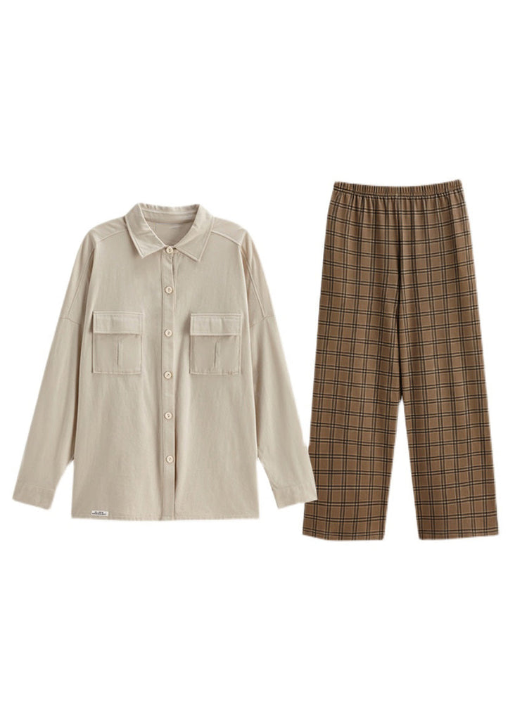 Organic Peter Pan Collar Button Cotton Women Pajamas Two Piece Set Long Sleeve LY1891