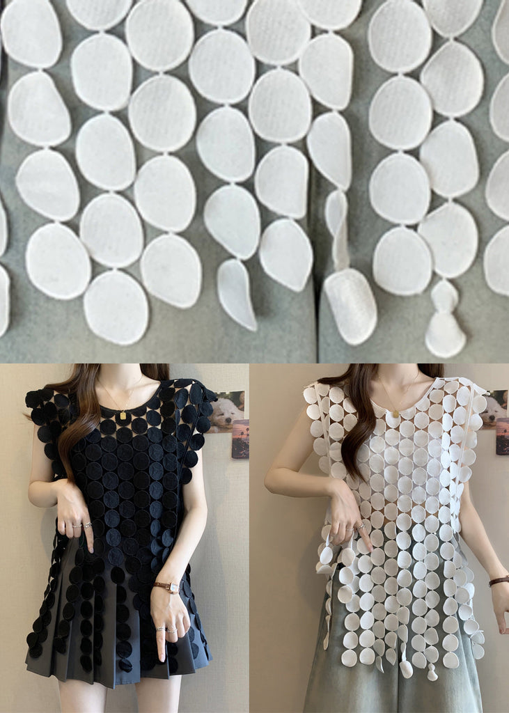 Women Black O Neck Hollow Out Solid Top Sleeveless