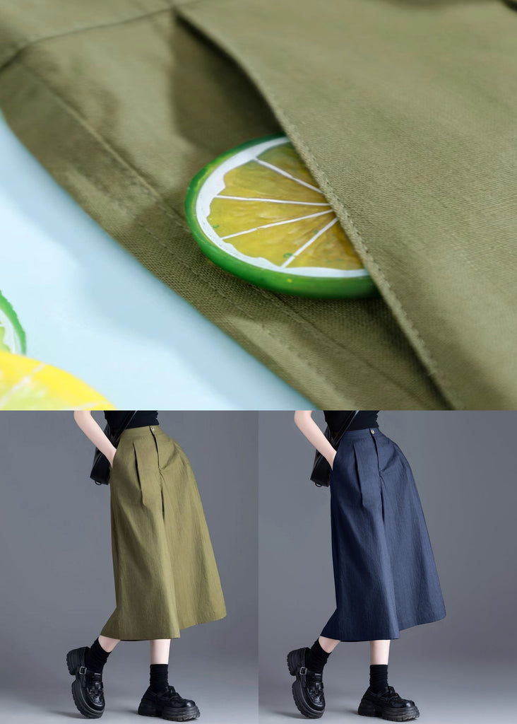New Navy Pockets Elastic Waist Linen Crop Pants Summer