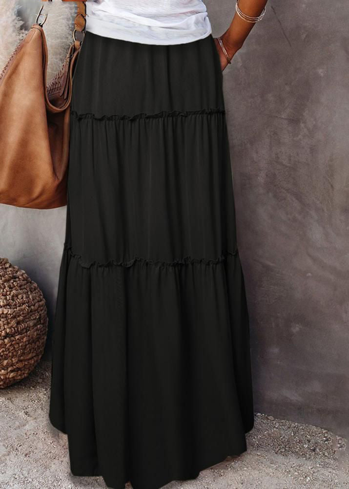 Patchwork Waist Handmade Ruffled Yellow Maxi Summer Skirt Elastic FashionChic