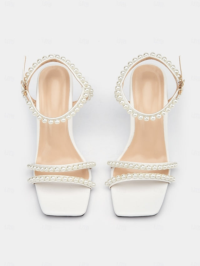 Pearl-Embellished Elegant Heels – Open-Toe Wedge Women's