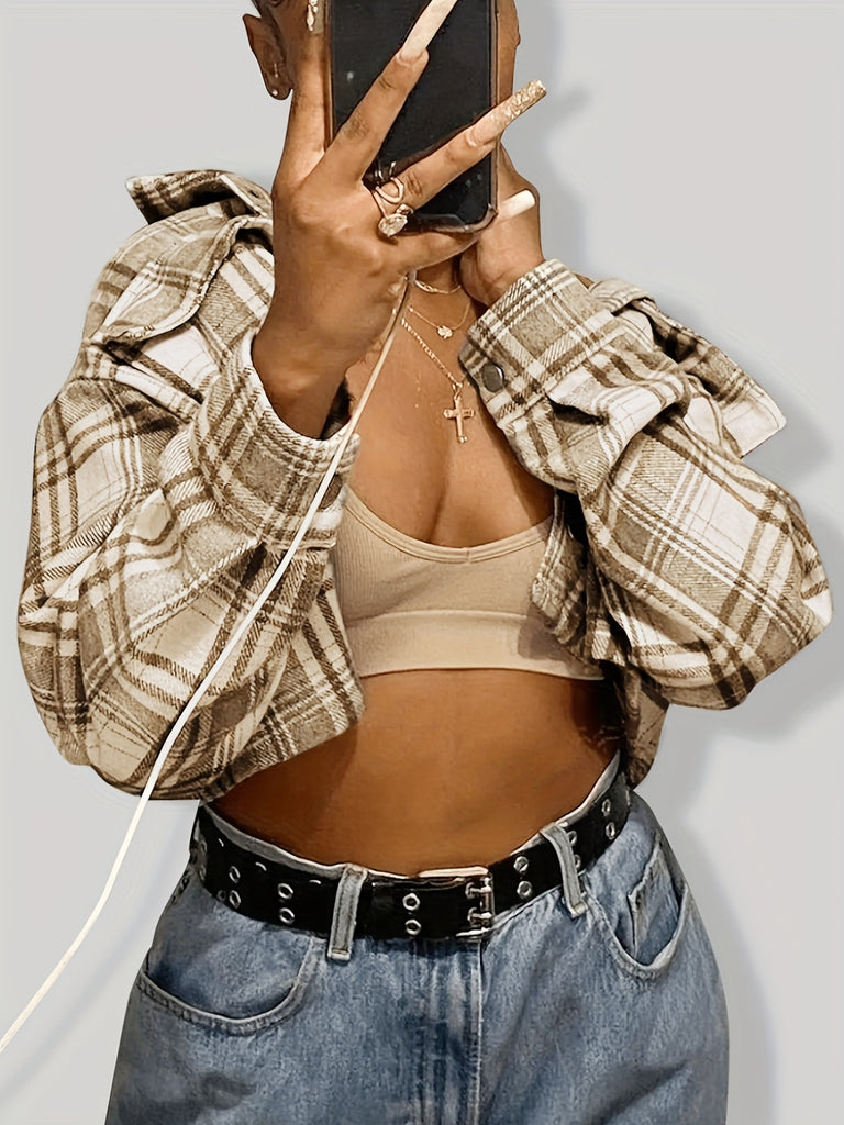 Every product is unique, just like you. If you're looking for a product that fits the mold of your life, the Plaid Print Cropped Jacket ER8547 is for you.