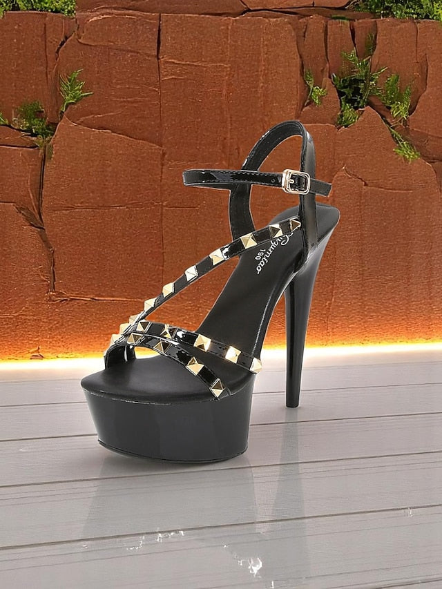 Women's Platform Stiletto Heels with Studded Straps, Sexy