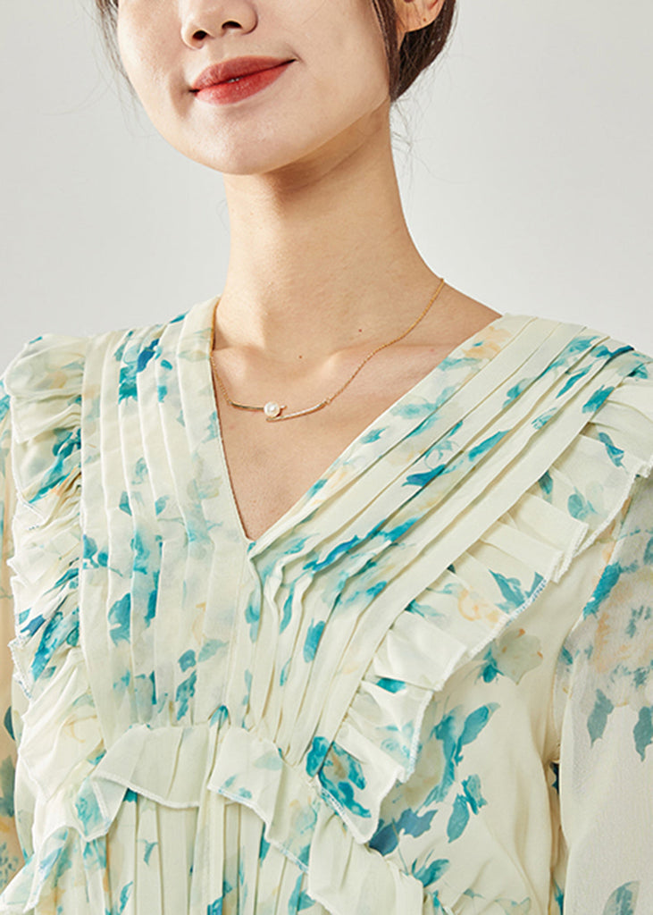 Plus Size Blue Print Patchwork Ruffles Wrinkled Chiffon Long Dress Spring LY1815