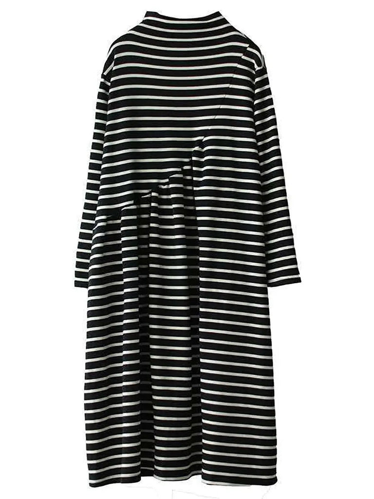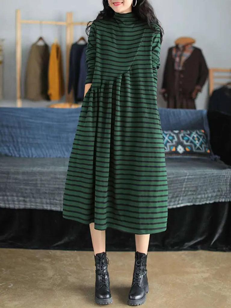 Women Stripe Turtleneck Cotton Dress