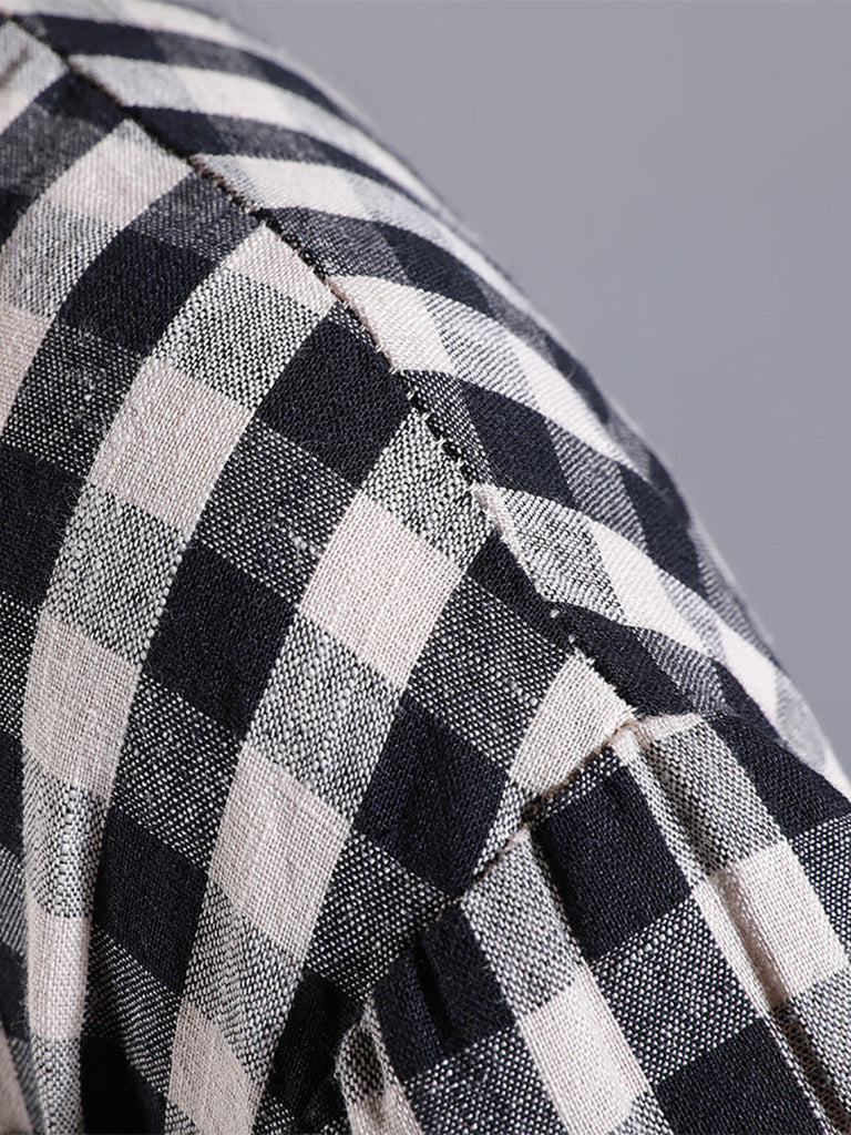 Plus Size Women Casual Plaid Summer Cotton Linen Dress SC1061