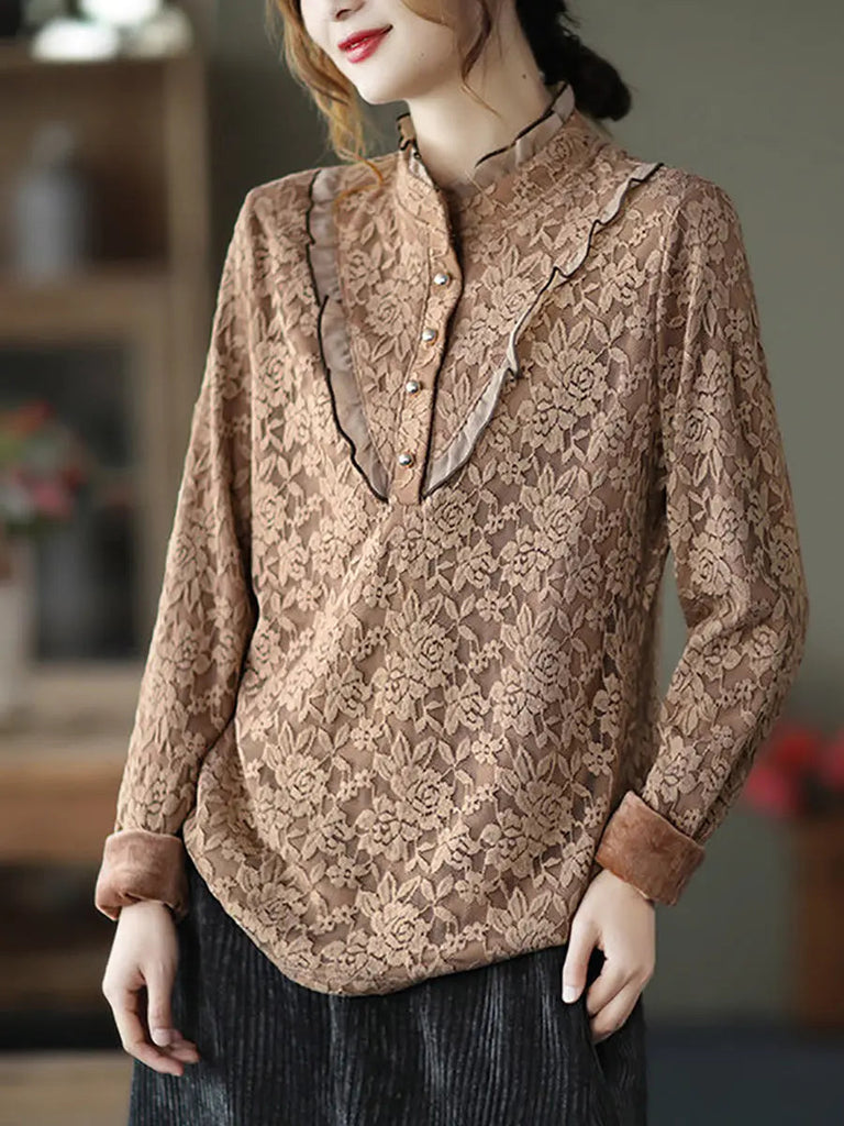 The Women Flower Lace Fleece Lined Shirt is the yin, to your yang. You've found what you're looking for.