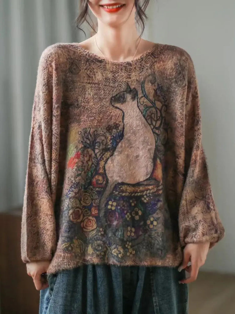 Women Cat Loose Sweater