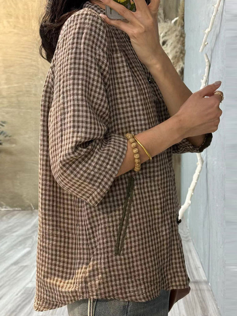 Plus Size Women Retro Plaid Summer Cotton Button-up Shirt XX1062