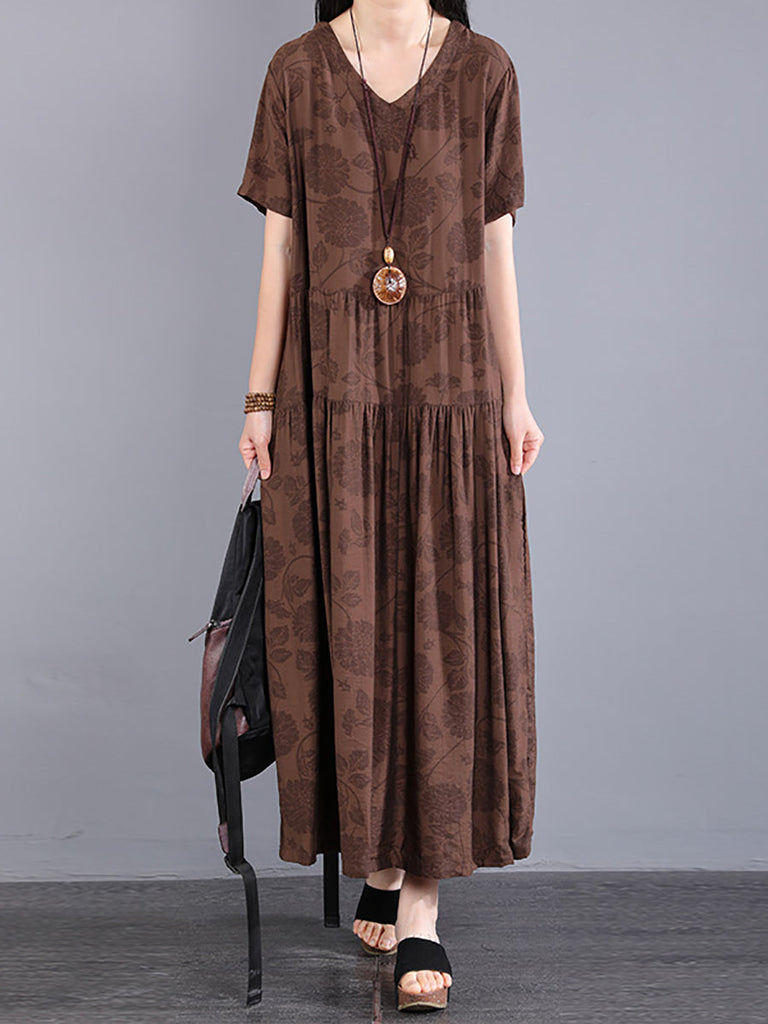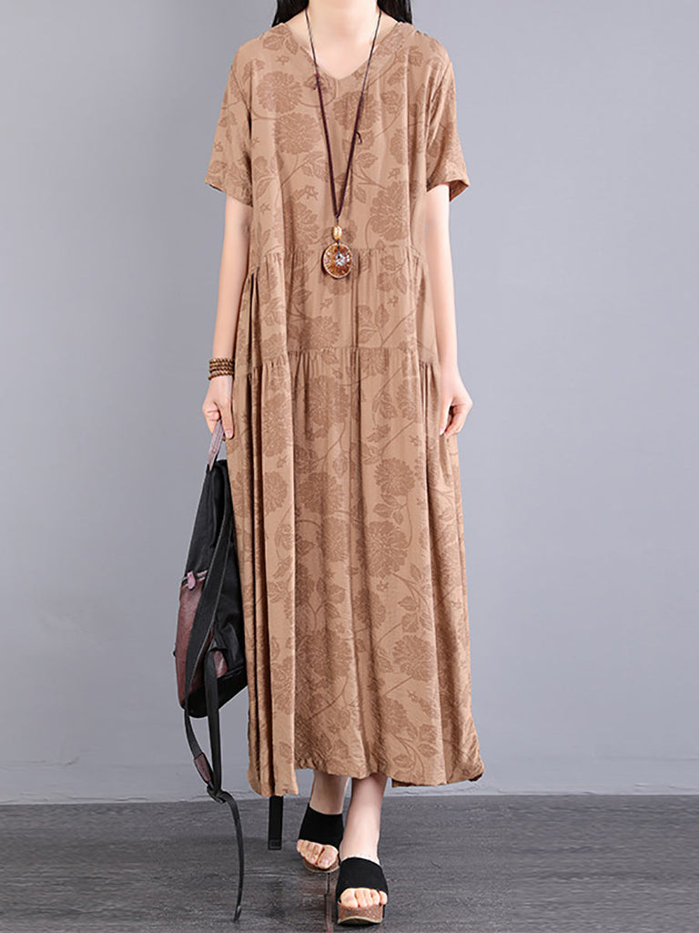 Plus Size Women Summer Artsy Flower Spliced Dress KL1024