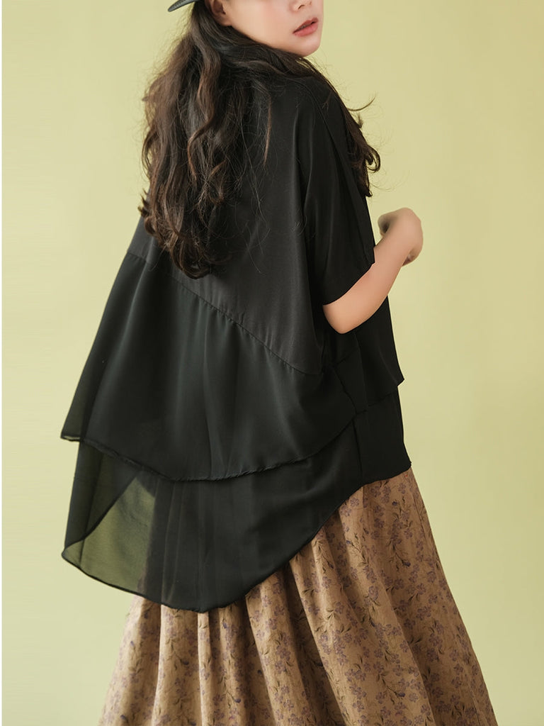 Plus Size Women Summer Casual Irregular Spliced Shirt AS1062