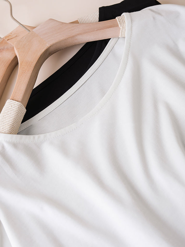 Crafted from a luxurious blend of 75% cotton, 5% spandex, and 25% nylon, this exquisite shirt showcases a chic and refined solid pattern. With an O-neck collar and short raglan sleeves, it exudes a relaxed yet sophisticated flair, making it a must-have for the warmer months.