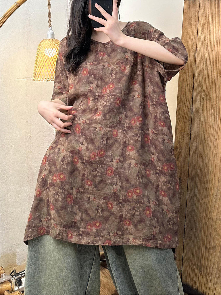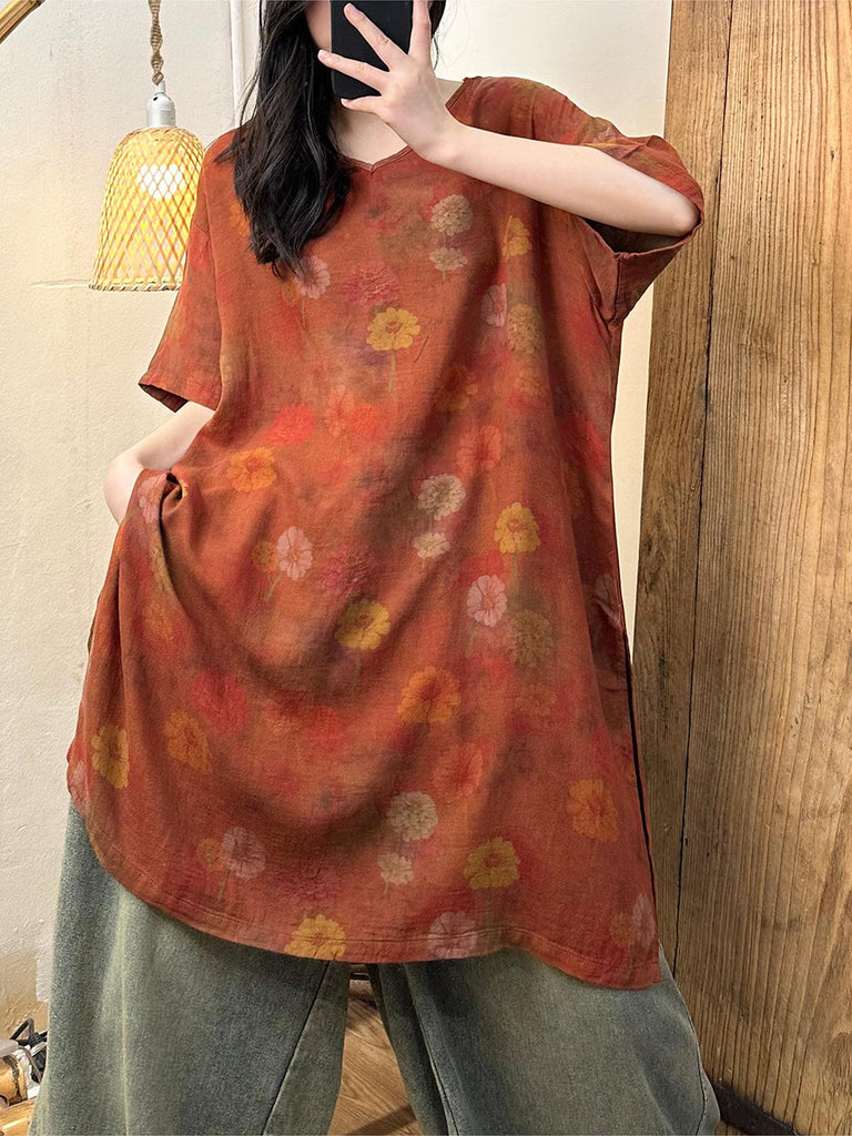 Plus Size Women Summer Retro Flower Cotton Dress XX1061