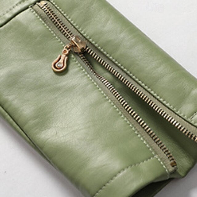Women's Faux Leather Jacket Comfortable Zipper Pocket