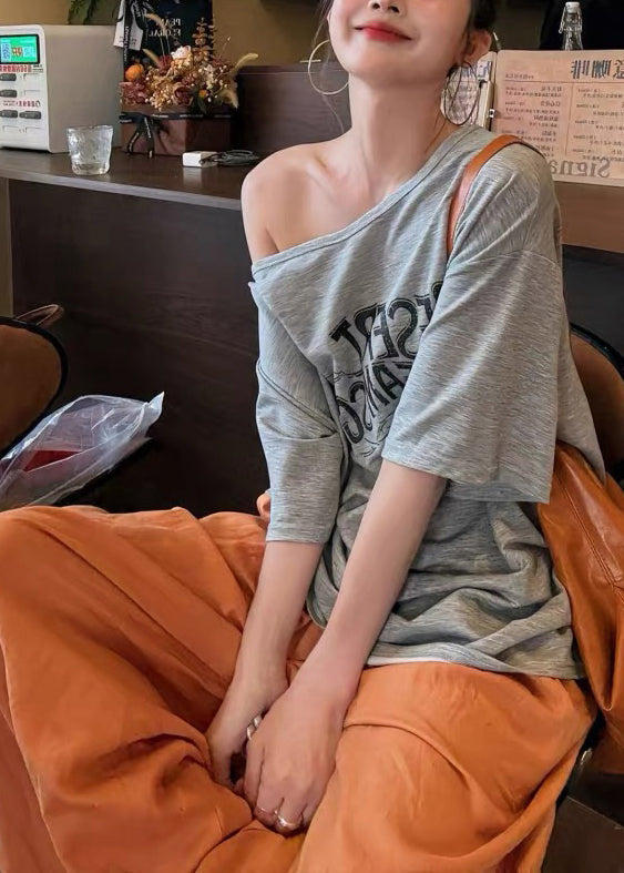 Boho Grey Oversized Print Cotton Tank And Wide Leg Pant Two Pieces Set Fall