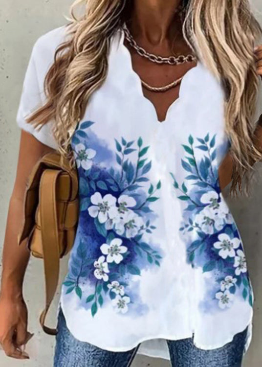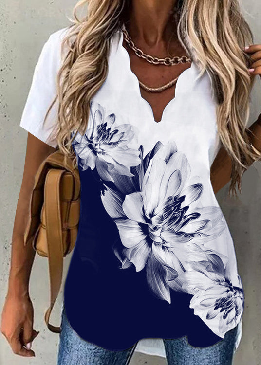 Printed Shirt printing short sleeve V Neck Waves Tops Black White Colour