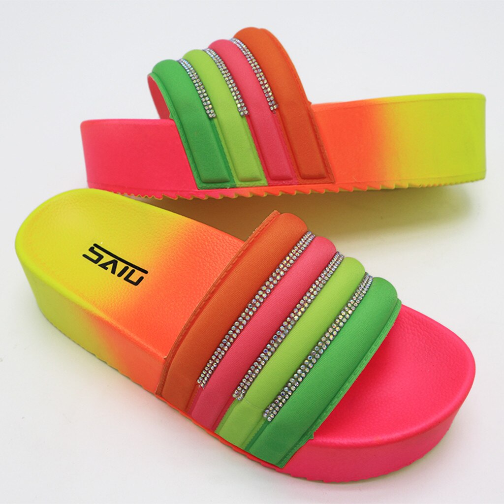 The Rainbow Platform Slippers F744 destined to impress, and priced at only $15.99, for a limited time.
