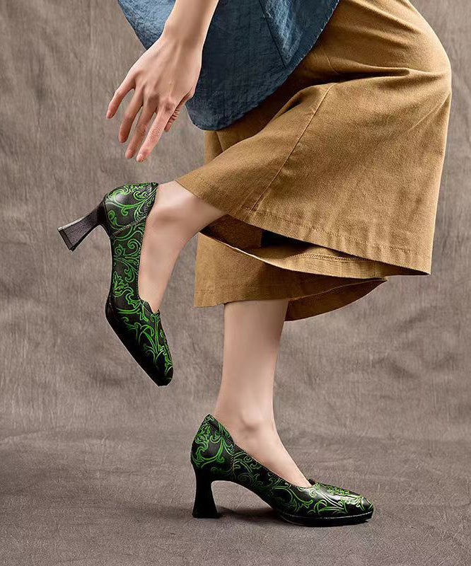 Retro Cowhide Leather Pointed Toe Embossed High Heels CZ1004