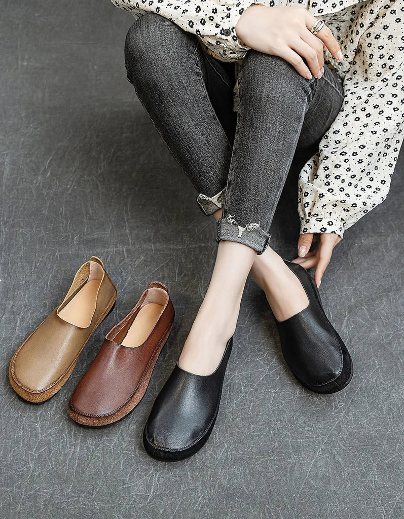 Slip into style with these Soft Leather Retro Flat Shoes! Made from high-quality leather, they provide comfort and a touch of nostalgia. Whether you're running errands or hitting the town, step out in these fashionable flats. (No more aches and pains from uncomfortable shoes!)