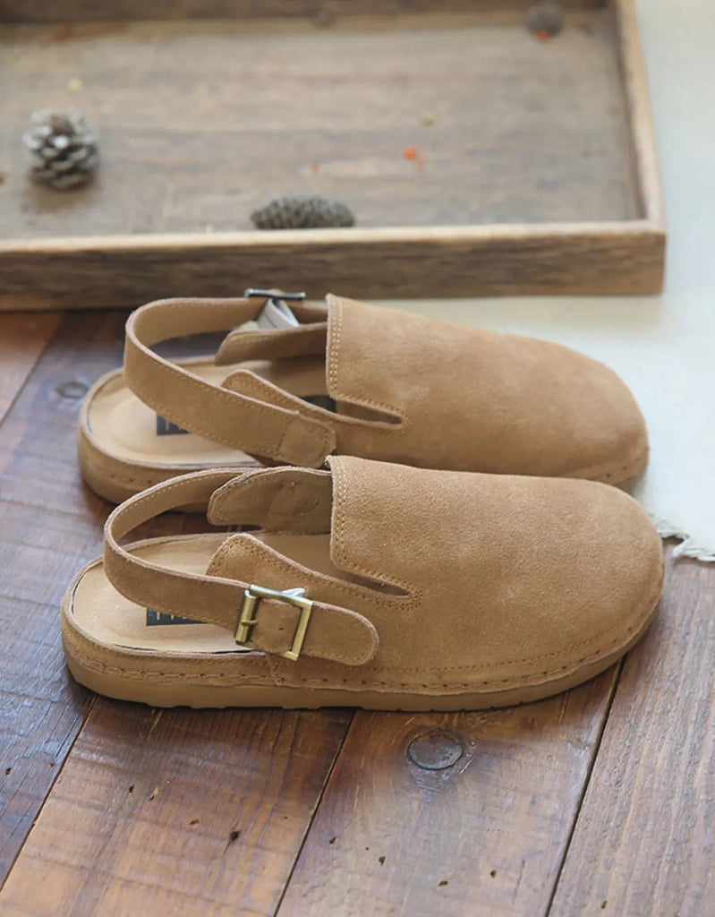 Suede Round Toe Retro Flat Shoes Slingback Ada Fashion