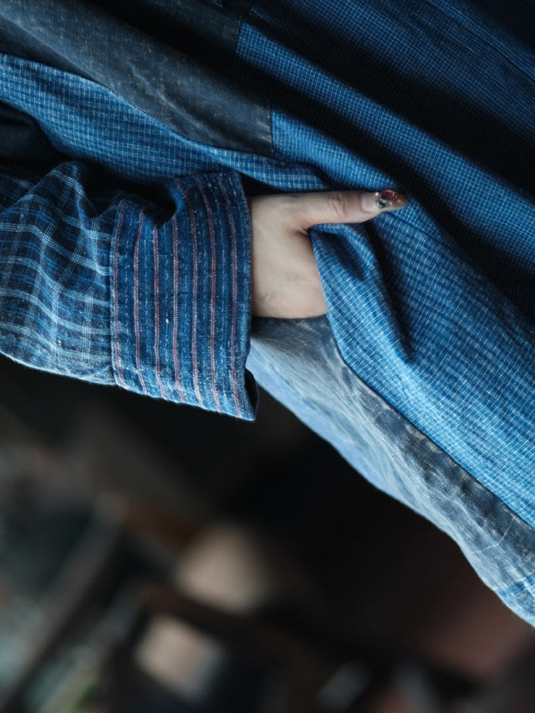Retro Patchwork O-Neck Dress Women Cotton Autumn