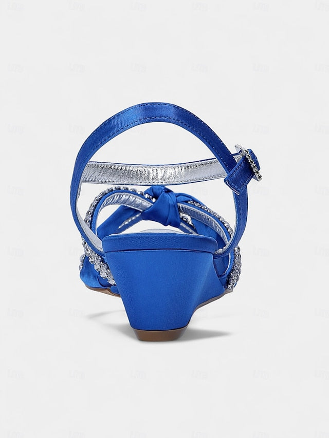 Gender: Women's, Category: Heels, Style: Elegant, Fashion, Sexy, Occasion: Party, Wedding, Activity: Walking, Toe Shape: Open Toe, Upper Materials: Satin, Lining Materials: Synthetic Leather, Outsole Materials: Rubber, Platform Height (inch): 0.39, Embellishment: Rhinestone, Season: Winter, Fall, Summer, Spring, Size Suggestion: standard size, select your usual size, Closure Type: Lace-up, Heel Height(inch): 1.57, Heel Type: Wedge,