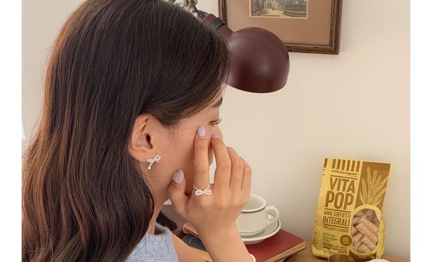 Ring Sterling Beaded 925 Bow Elastic Silver