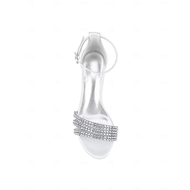 Satin Sandals Women's with Rhinestone Block Purple Heel FashionChic