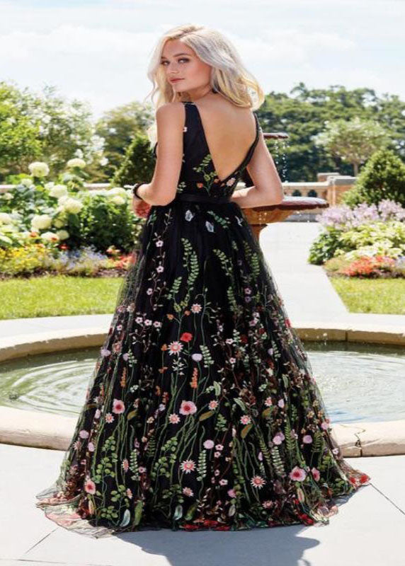 Sexy Black Embroideried Patchwork Chiffon Dress Summer LY1920
