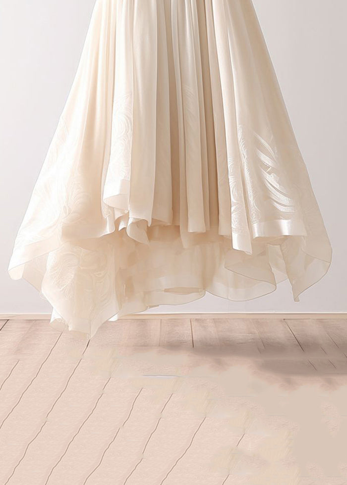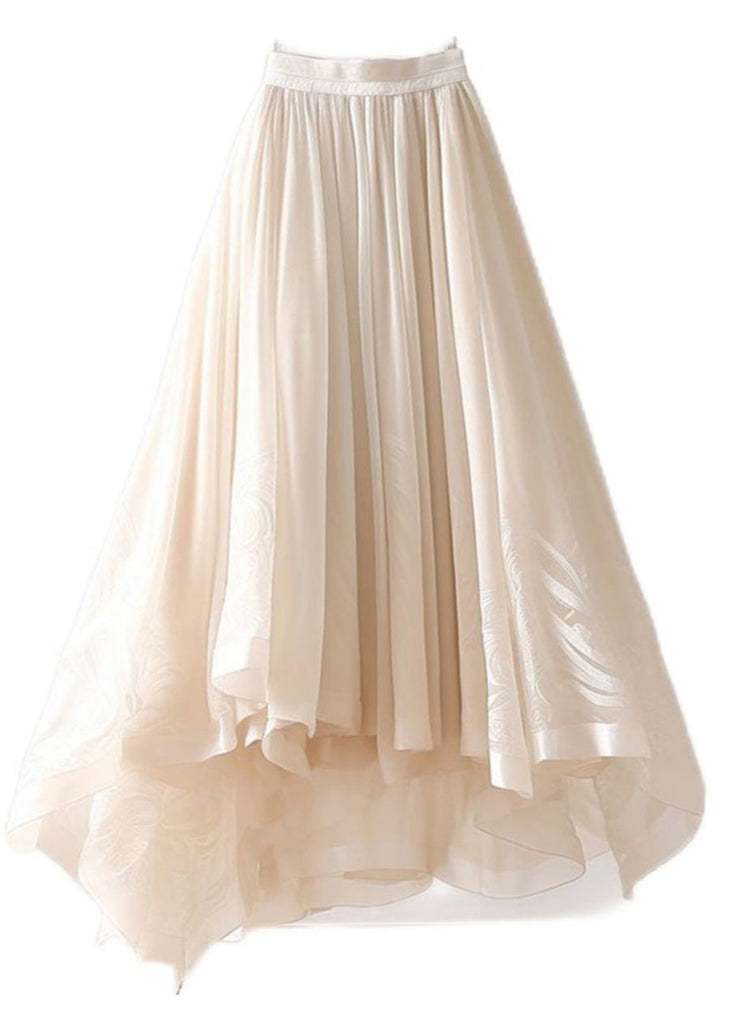 Simple Beige Asymmetrical Wrinkled Elastic Waist Chiffon Skirt Summer AB1013