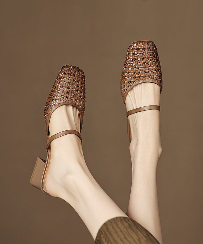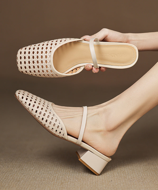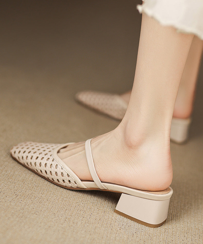 Slide Chunky Boutique Black Out Hollow Sandals Splicing FashionChic