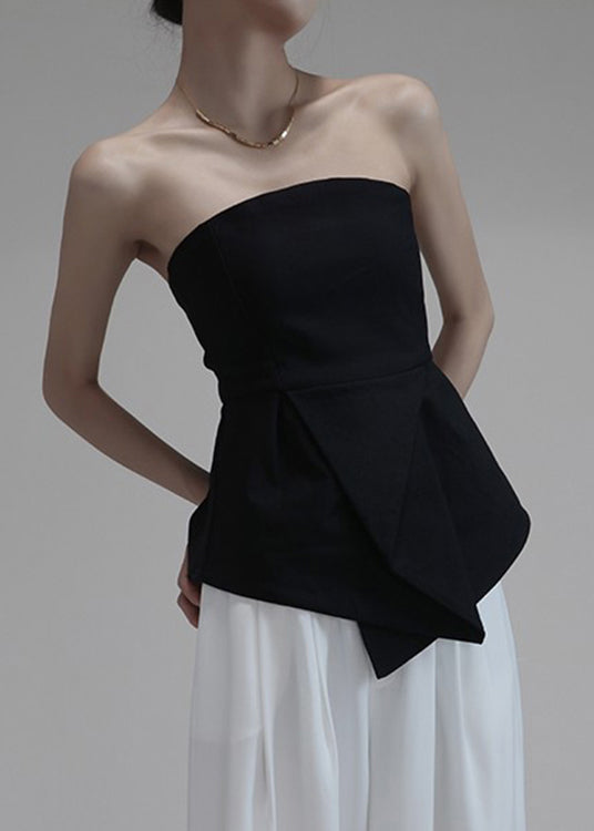 Slim Fit Black Asymmetrical Cold Shoulder Cotton Chest Wrapping Top Sleeveless AB1038
