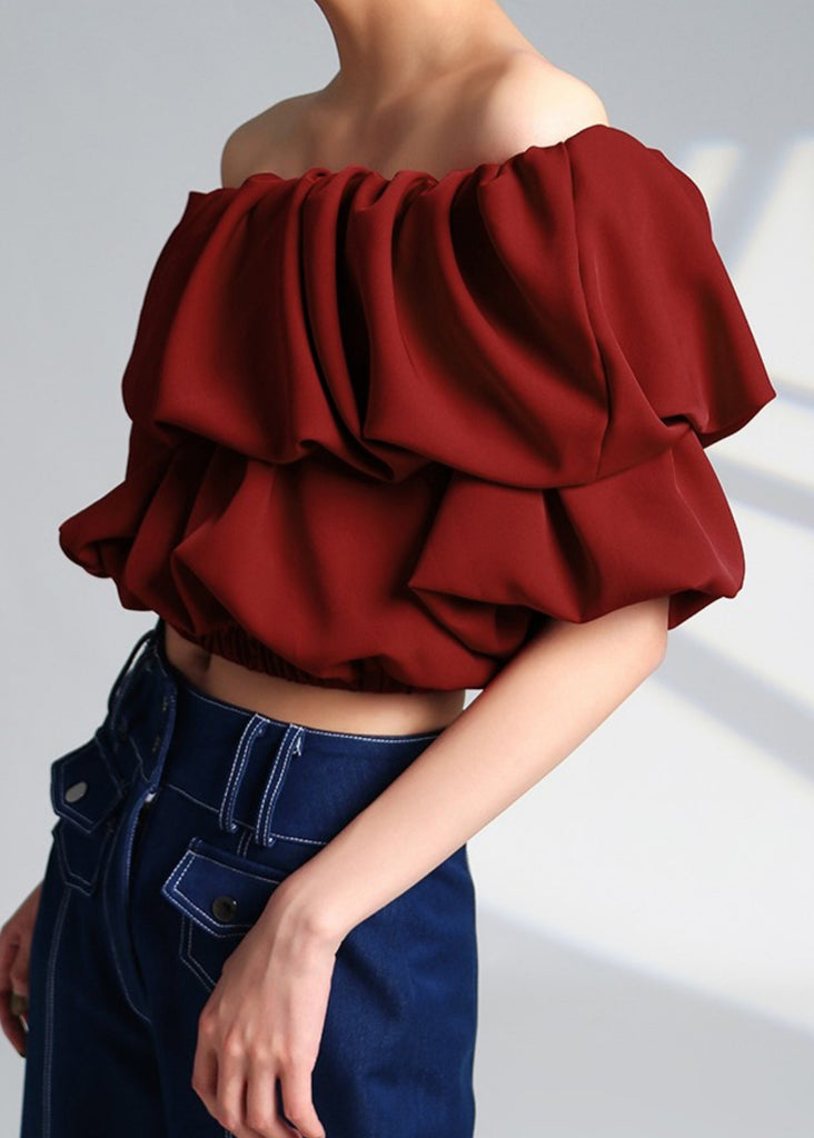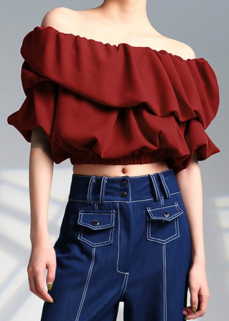 Slim Fit Red Slash Neck Solid Cotton Top Summer AB1048