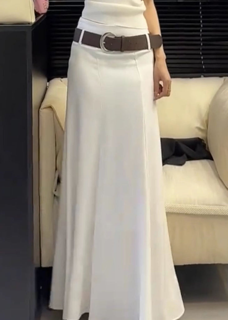 Slim Fit White Solid High Waist Cotton Skirts Summer