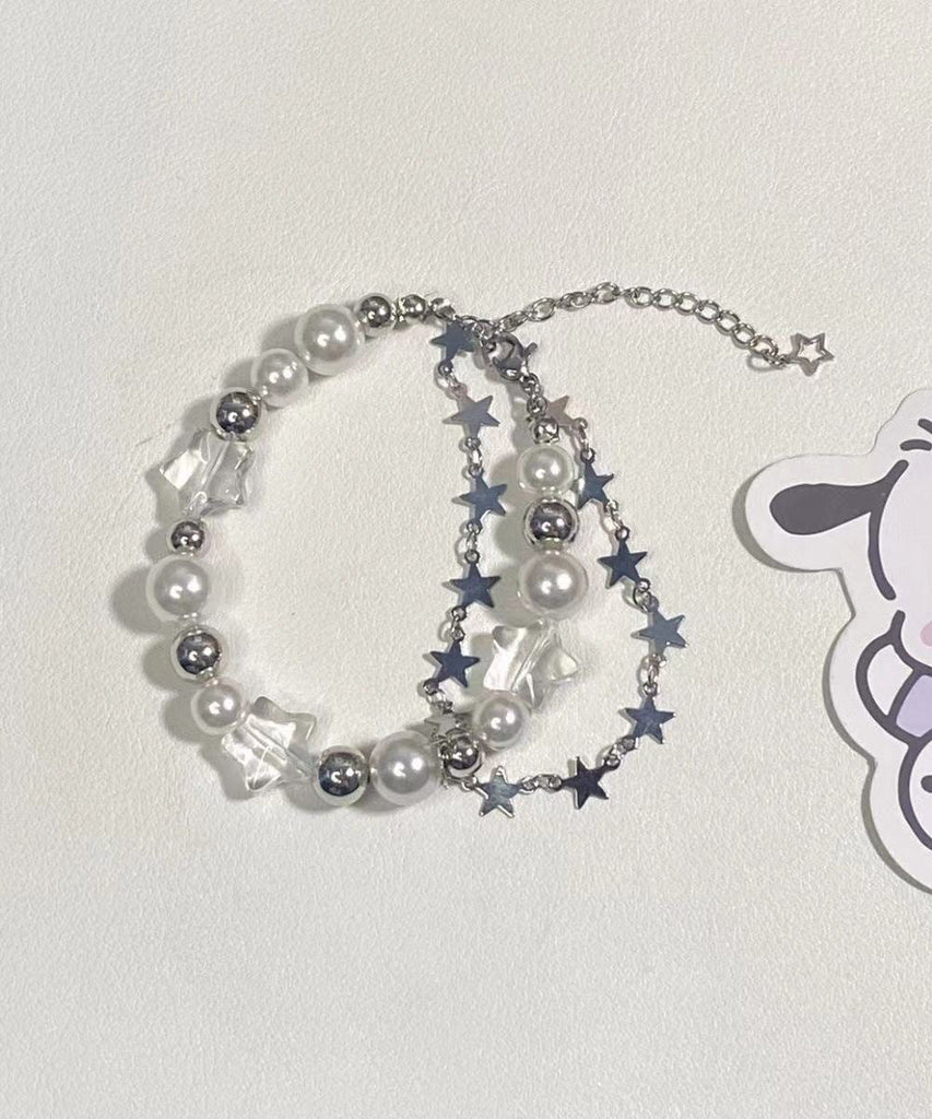 Beautiful White Stainless Steel Star Double-Layer Pearl Charm Bracelet