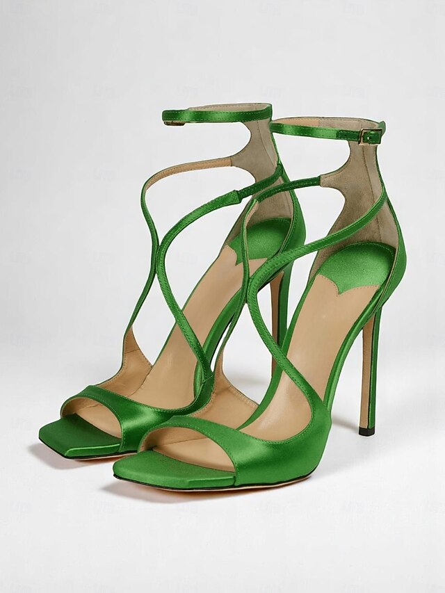 Gender: Women's, Category: Heels, Style: Elegant, Fashion, Sexy, Occasion: Party, Wedding, Activity: Walking, Toe Shape: Open Toe, Square Toe, Upper Materials: Satin, Patent Leather, Lining Materials: Synthetic Leather, Outsole Materials: Rubber, Season: Winter, Fall, Summer, Spring, Size Suggestion: standard size, select your usual size, Closure Type: Lace-up, Heel Height(inch): 4.13, Heel Type: Stiletto,
