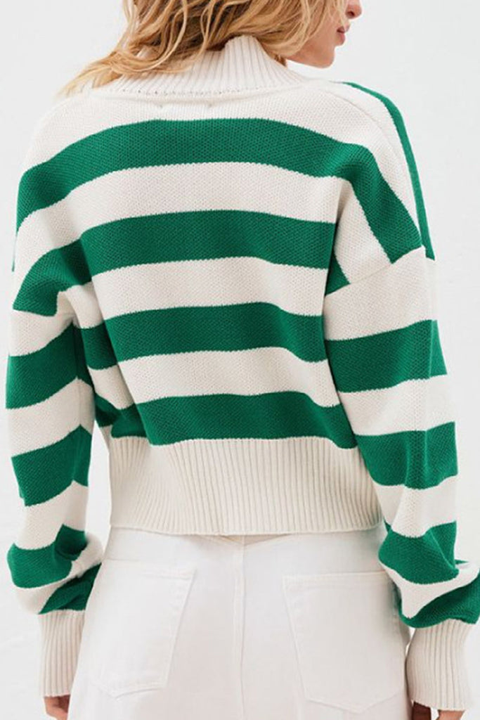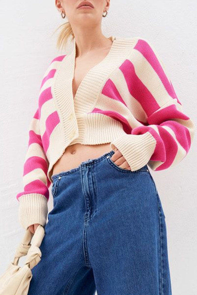 Street Striped Contrast Weave V Neck Outerwear GJ005
