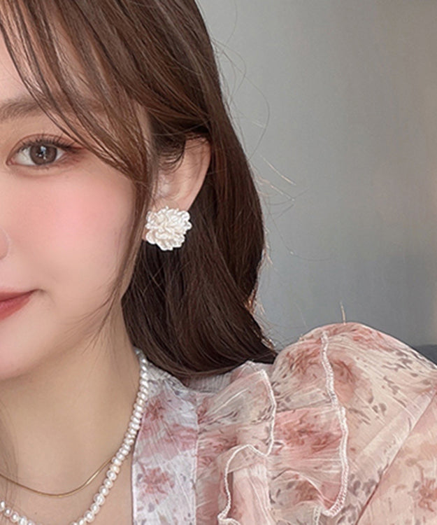 Style White Sterling Silver Acrylic Floral Stud Earrings