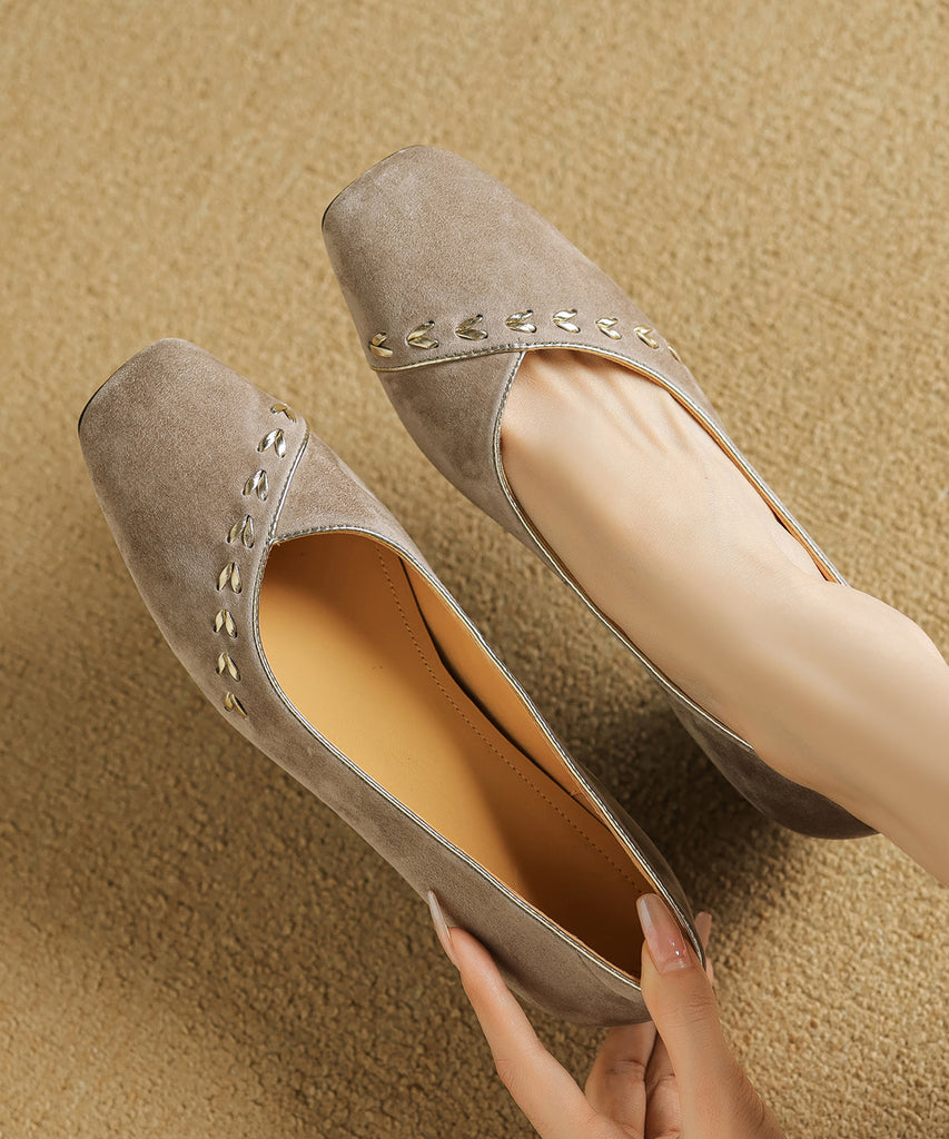 Toe Elegant Splicing Square Brown Shoes Suede Chunky