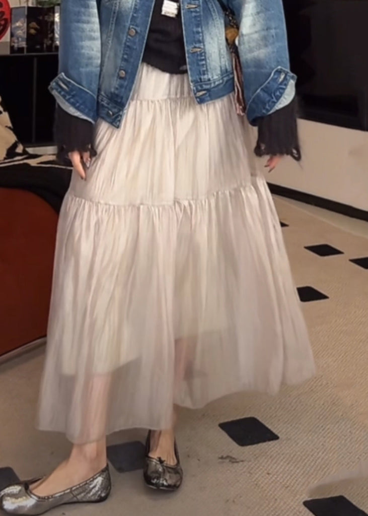Women Light Grey Wrinkled Elastic Waist Silk Skirts Summer