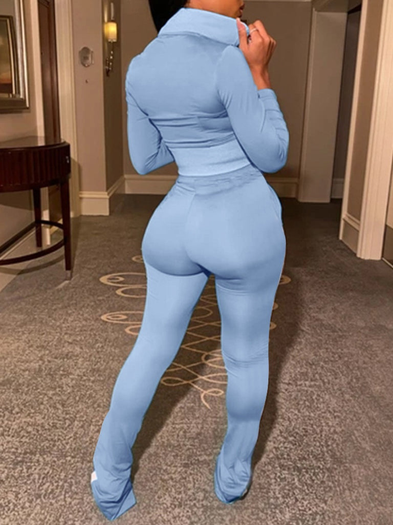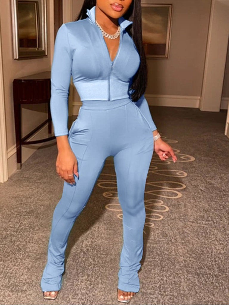 Product Title :BASICS Pocket Zipper Design Skinny Pants Set