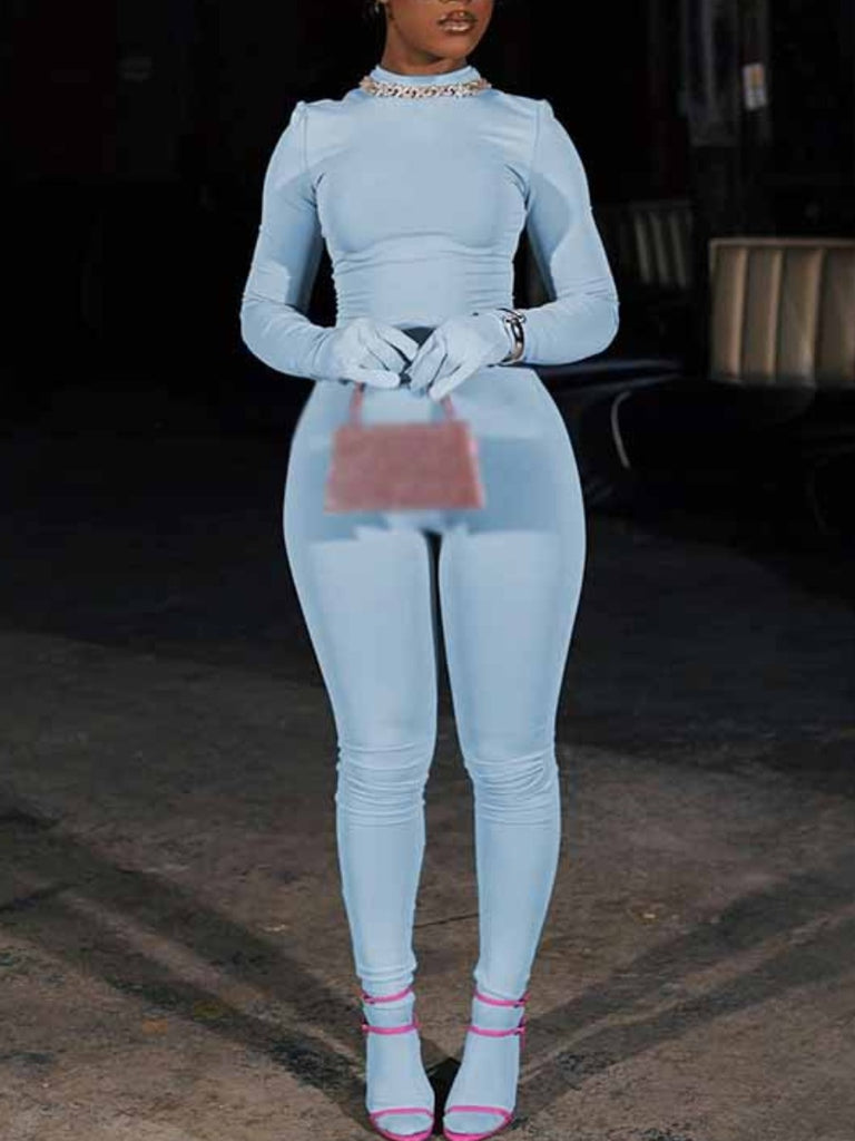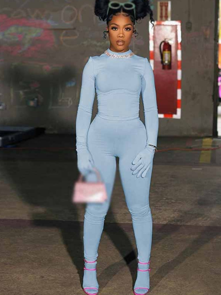 BASICS Round Neck Skinny Pants Set AC2056