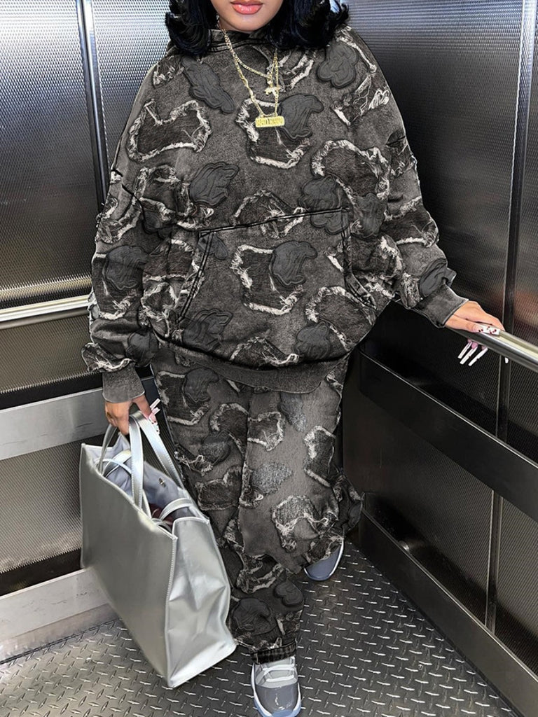 Product Title :Camo Print Kangaroo Pocket Pants Set
