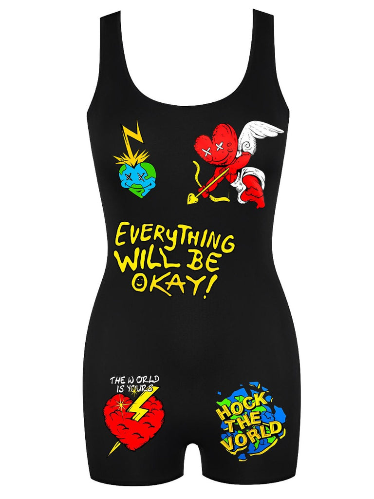 Life is too short to live without the Cartoon Letter Print Cami Romper AR502. Be happy. Be Content. Be Satisfied.