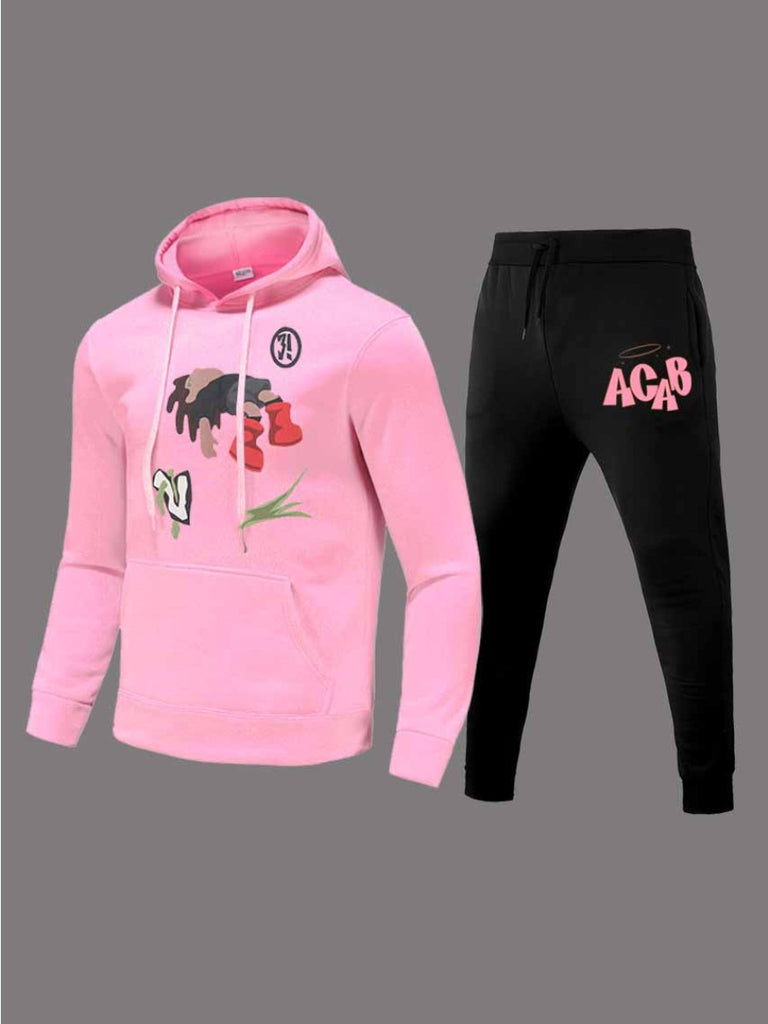 The Cartoon Letter Print Kangaroo Pocket Tracksuit Set AR5034 destined to impress, and priced at only $33.59, for a limited time.
